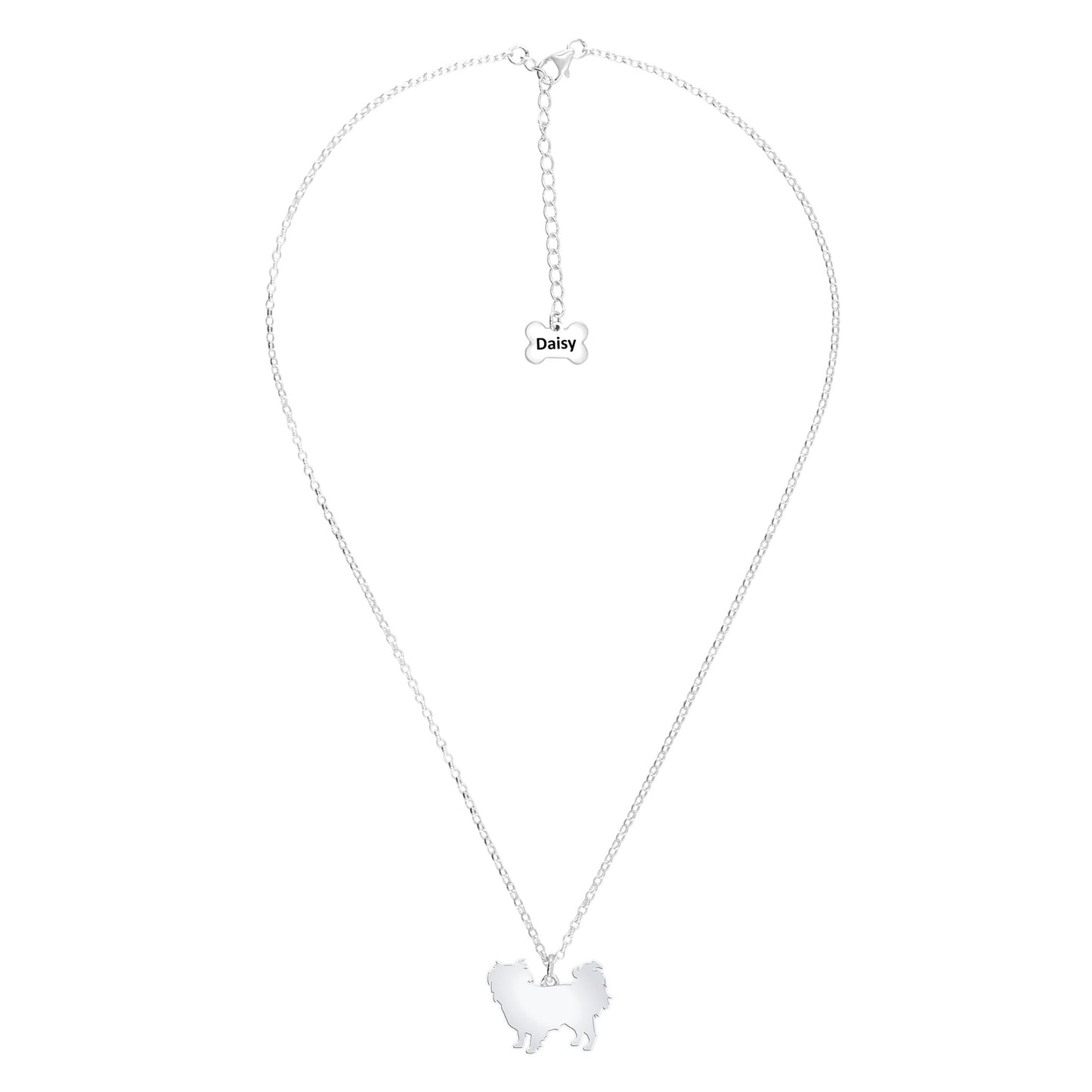 Japanese Chin Silhouette Silver Necklace - Personalised