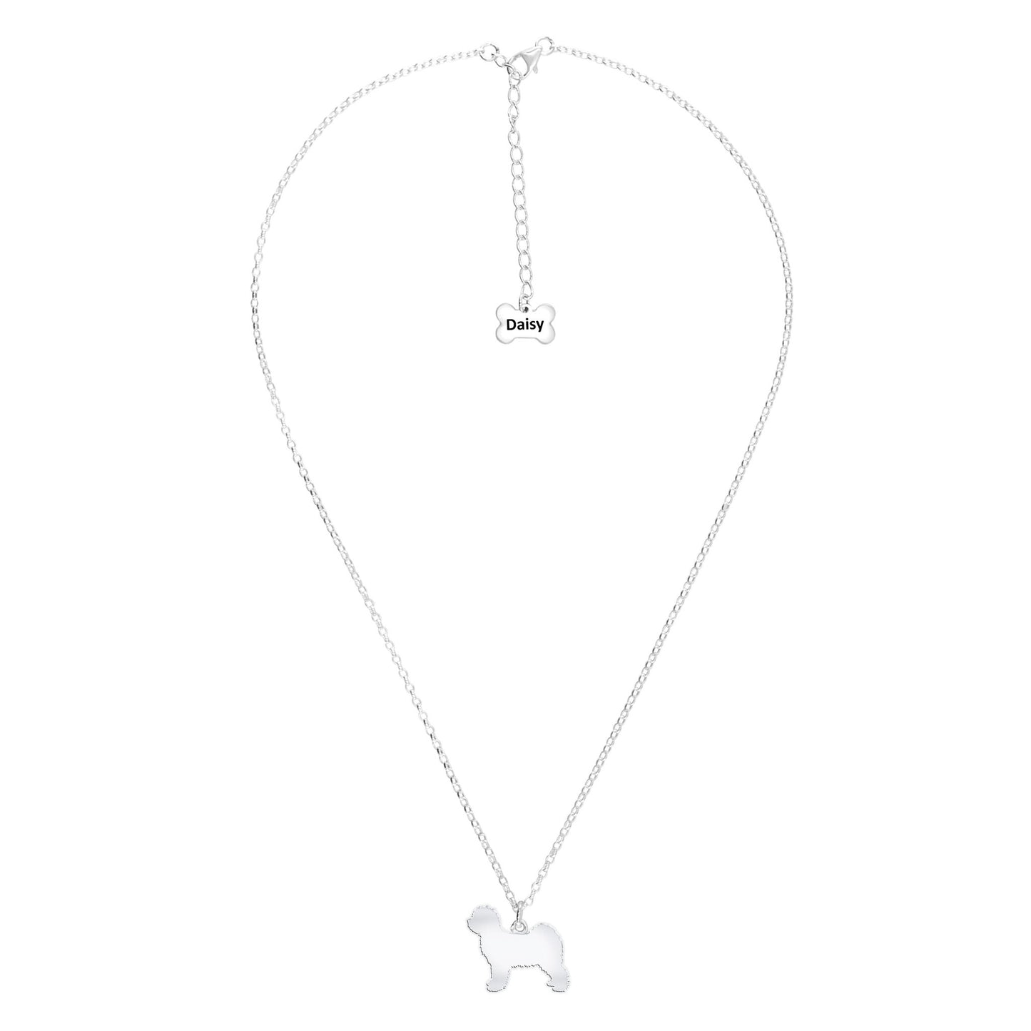 Tibetan Terrier Silhouette Silver Necklace - Personalised