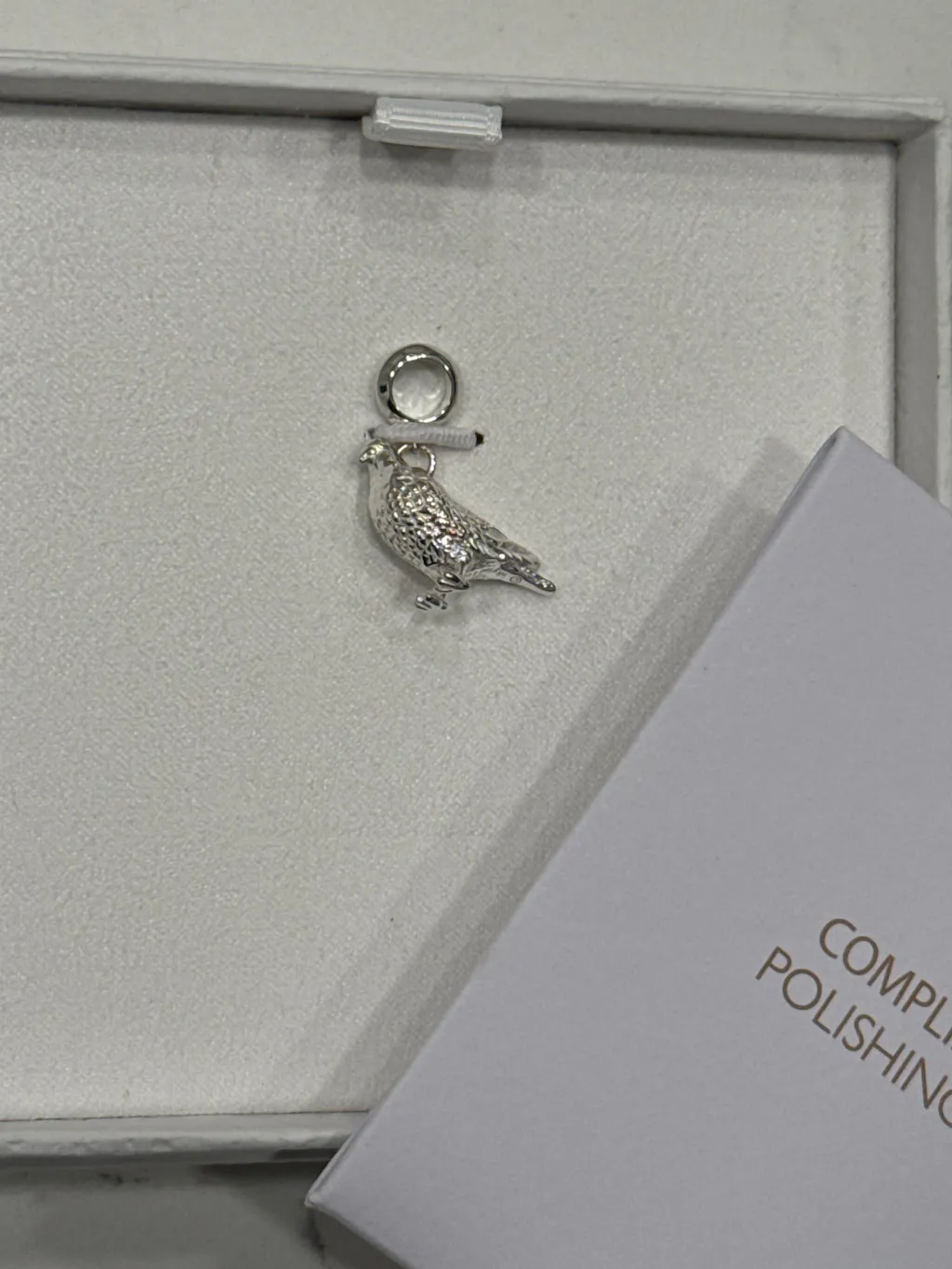 Very shiny, lovely, well crafted. This will be a gift for my MILs birthday (in memory of her late father who used to race pigeons.) Will make a lovely delicate little edition for her bracelet